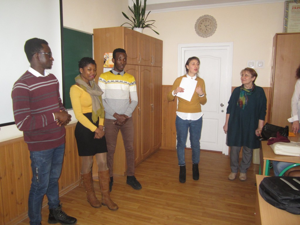 Студенти розповіли гімназистам про себе та мову своєї батьківщини. Учні класу мали можливість вивчити кілька фраз французькою, туркменською та екзотичними мовами африканського континенту. Усі гуртом також виконали відому українську пісню.