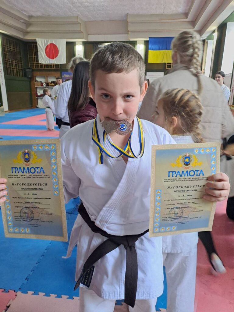 Учень 5-А класу Святослав Мусієнко став учасником змагань та виборов друге і третє місця в категорії куміте та ката особисті.