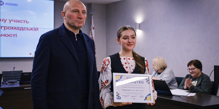 Серед нагороджених – учениця 11-Б класу гімназії Анна Кришталь. Її відзначено за активну участь у суспільно-громадській діяльності. Нагадаємо, цьогоріч вона є спікеркою Учнівської міжпарламентської асамблеї міста.