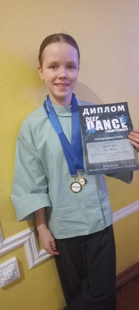Учениця 6-Д класу Дарія Дубовик узяла участь у конкурсі Deep Dance, що нещодавно проходив у м. Черкаси.