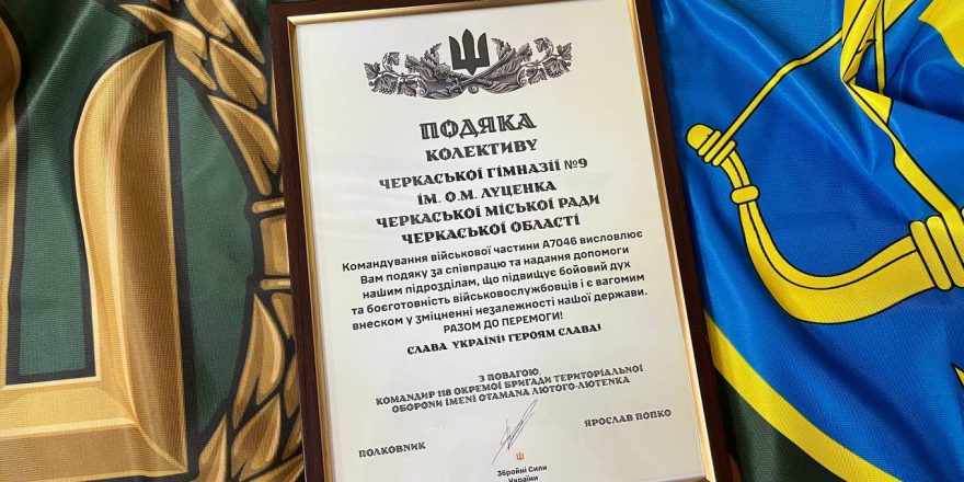 Колектив гімназії відзначили за небайдужість та постійну підтримку війську