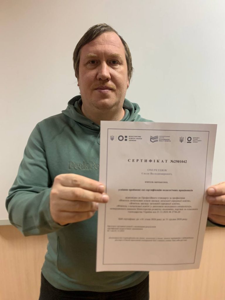 Цьогоріч сертифікацію проходили й успішно завершили – учитель математики Євген Очеретнюк та вчитель української мови та літератури Дмитро Кишиченко.