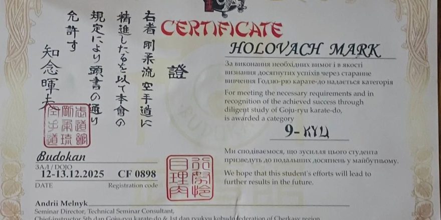 Марко Головач пройшов атестацію з годзю-рю карате