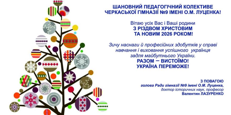 Голова Ради гімназії Валентин Лазуренко вітає гімназійну родину з прийдешніми святами
