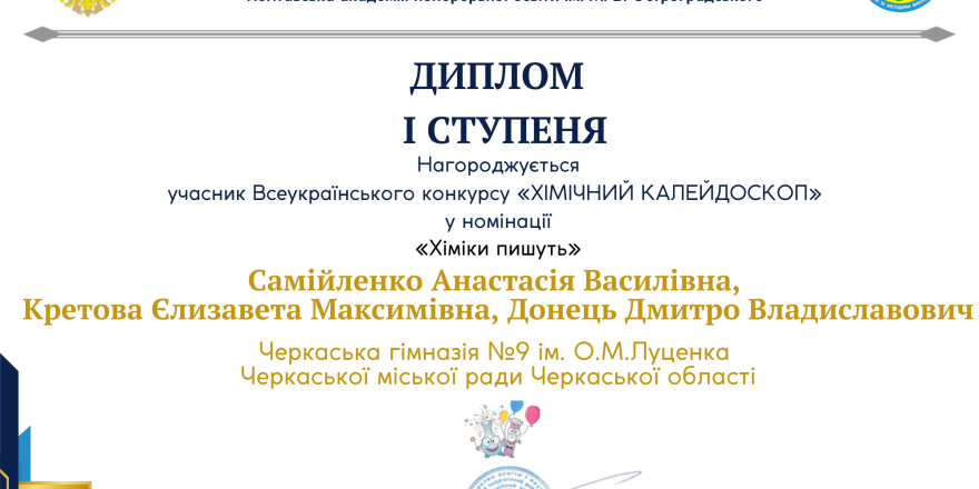 Гімназисти вибороли перше місце всеукраїнського конкурсу «Хімічний калейдоскоп»