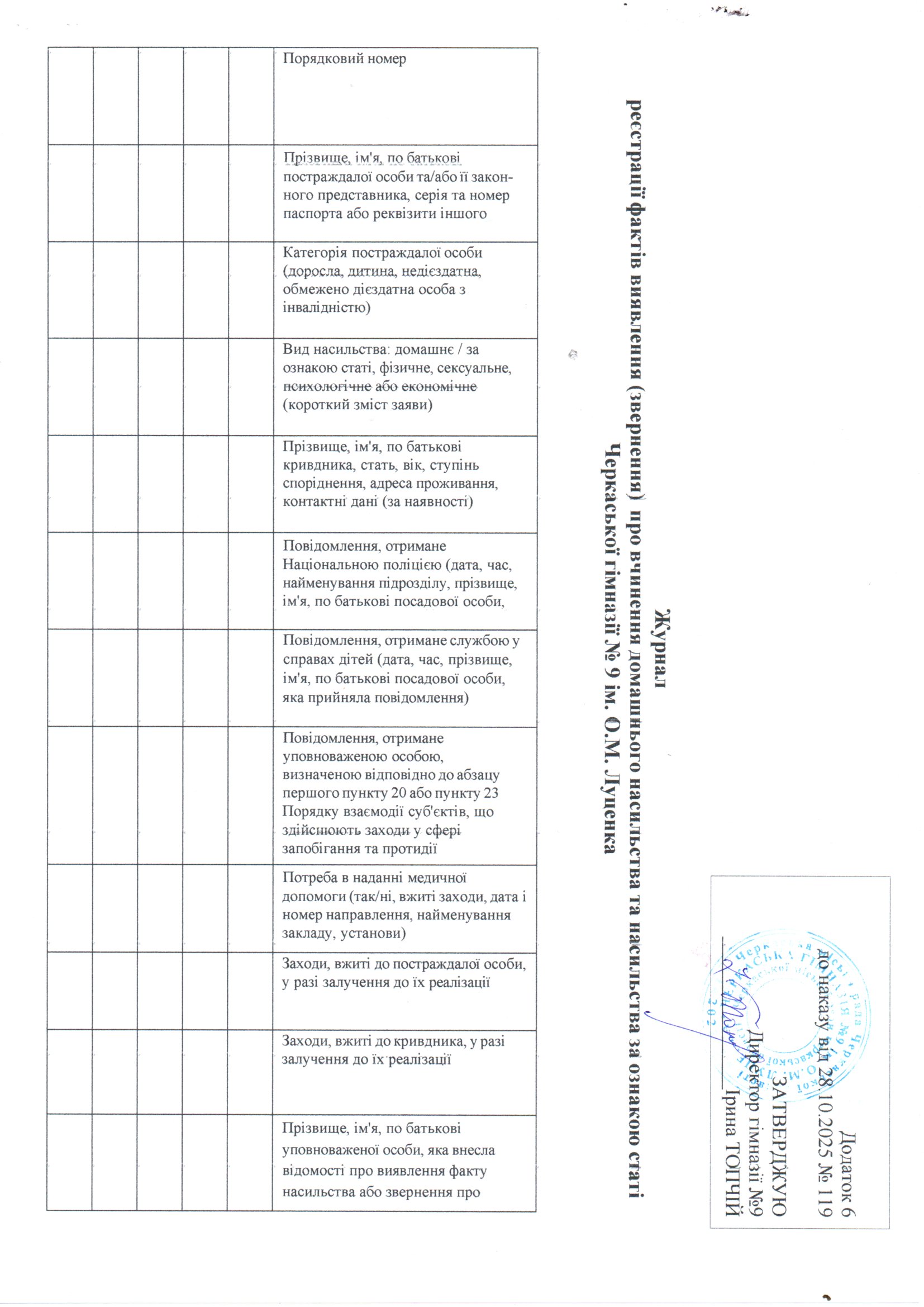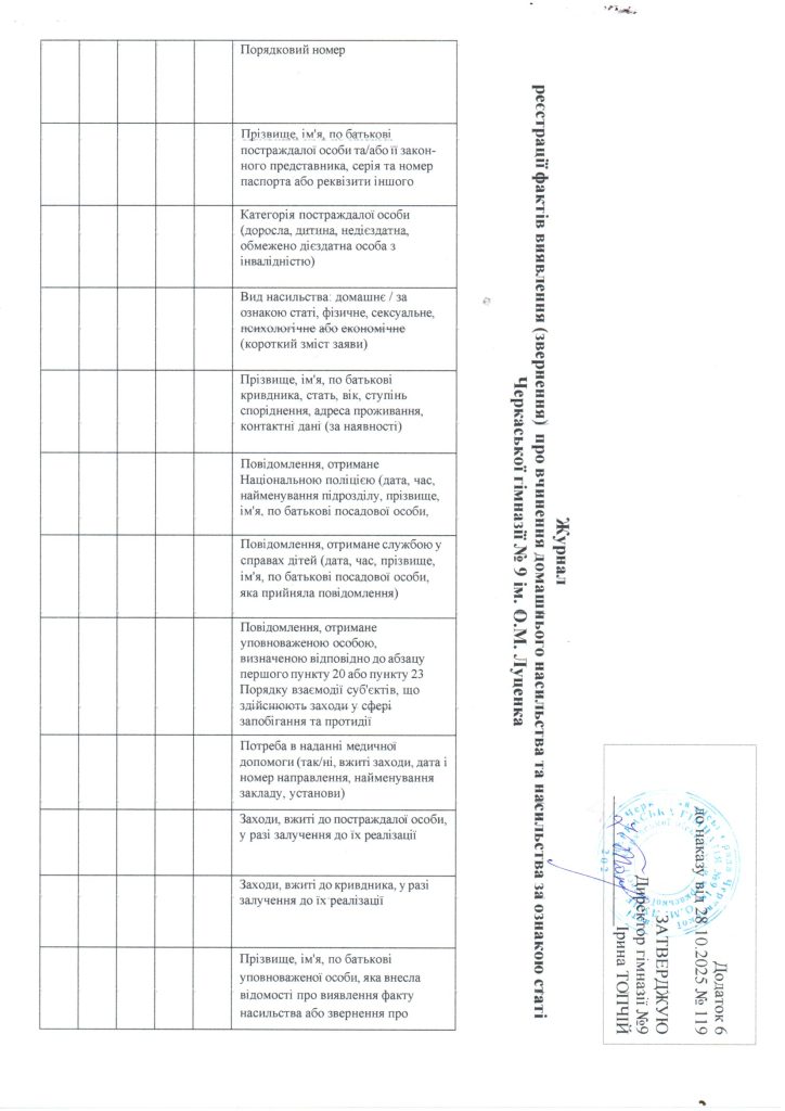 Журнал реєстрації фактів виявлення (звернення) про вчинення домашнього насильства та насильства за ознакою статі