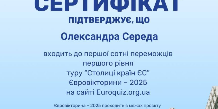 Share the post "Олександра Середа увійшла до сотні переможців Євроквізу-2025"